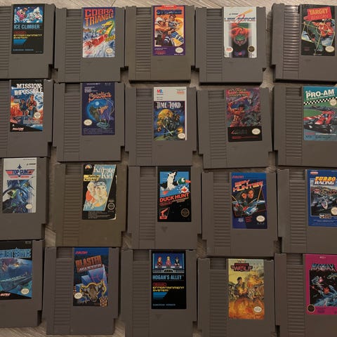 Nintendo Nintendo 8-bit spillpakke med fire spill: Chip 'n Dale Rescue Rangers, Golf, Deadly Towers og et fjerde spill. Spillene er kompatible med Nintendo Entertainment System (NES). Spillene leveres i originalemballasje, som vist på bildene.