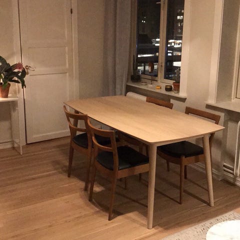 Spisebord fra Bohus i hvit laminat med ask ben gis bort mot henting