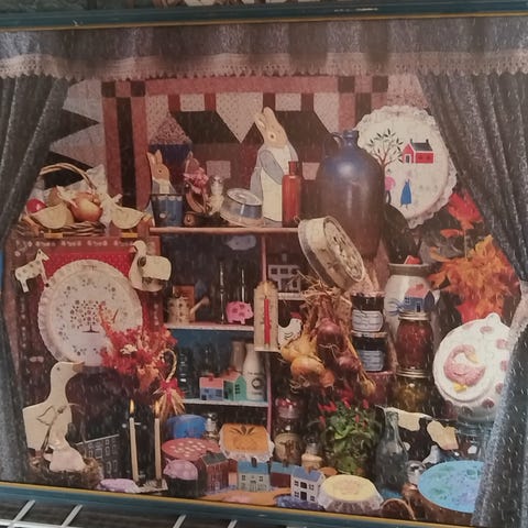 Puslespill med 24 små esker til et julebilde 24 desember. Må hentes på Bugården i Sandefjord