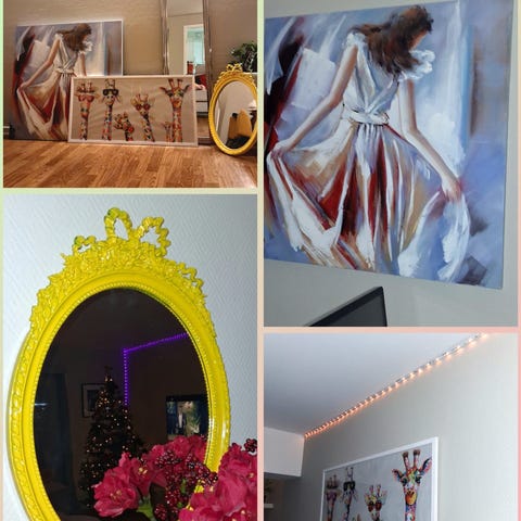 Selger interiør ting samlet, 5 bilder,gull speil, fat med interiør ting,skål og 2 vaser og en lysholder i gull. Verdi på alle tingene er over 2500kr samlet.