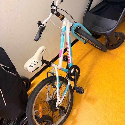 Lagret inne, helt minimalt brukt. Forhjulet er flatt, punktert eller bare tom for luft. Finner ikke pumpe🫣