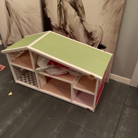 Stort dukkehus til salgs. Mykje god bruk igjen. Følger med litt møbler.