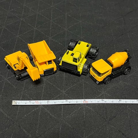 Bruder barneleker bestående av ulike arbeidsmaskiner og kjøretøy i forskjellige størrelser og farger. Leker egnet for barn, laget i plastmateriale.