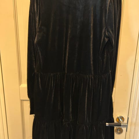 Part Two Hverdagskjole i svart cordfløyel, størrelse 42 for kvinner. Kjolen har en enkel og funksjonell design med glidelås foran og elastiske mansjetter på ermene. Egnet som hverdagsplagg.