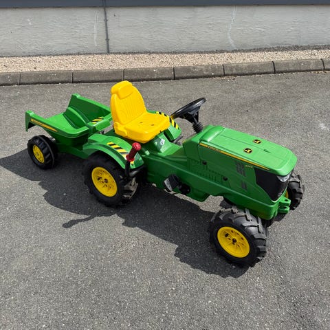 Se beskrivelse her: https://www.felleskjopet.no/produkt/hjem-og-fritid/fanshop/john-deere-fanshop/leker/elektrisk-traktor-med-tilhenger-for-barn-50265945_BASE