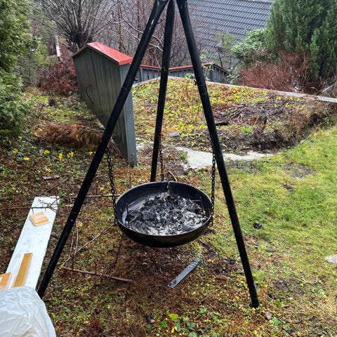 Espegard bålpanne med grillrist, vindskjerm og bordplater.