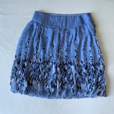 Nydelig skjørt fra ootd i str. M. Skjørtet er sydd inn hos skredder i Oslo da skjørtet var stort i str. vil si nå at det er str. m. For å si inn skjørtet måtte en lomme fjernes, så skjørtet har en lomme. Skjørtet er ellers i fin stand, nydelig a fassong og faller fint. Livvidde 80 cm