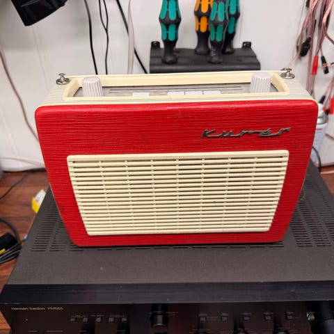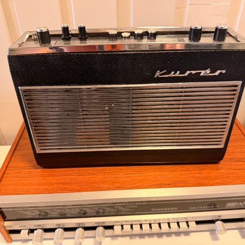 En fin hel og pen Radionette Kurer,slår seg på og lager lyd, fant ikke noen stasjoner.