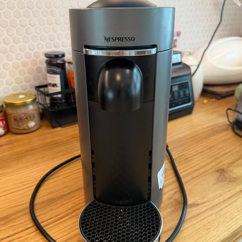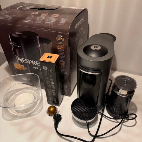 Selger vårt kjære Nespresso Vertuo Plus kaffemaskin med melkeskummer pga overgang til annen system. Kaffemaskin og melkeskummer selges samlet, pluss kapsler stativ (har 18stk Bianco Piccolo kapsler som kan følge med om ønskelig).