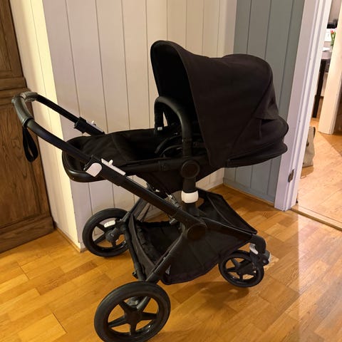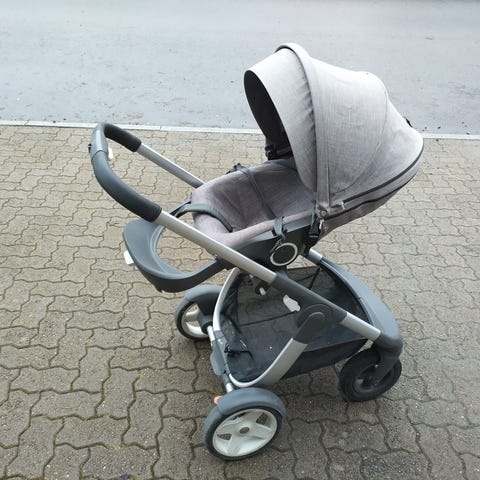 Pent brukt liggedel i svart til Stokke Trailz barnevogn. Til baby 0-6mnd. Laget av slitesterkt materiale. Designet for å gi komfort og beskyttelse for barnet under transport.