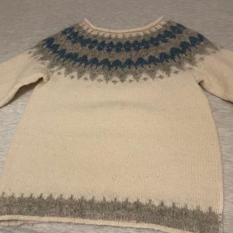 Veldig pen og deilig genser. Oversize i størrelsen så den ble dessverre litt stor til meg. Kun brukt ett par ganger.