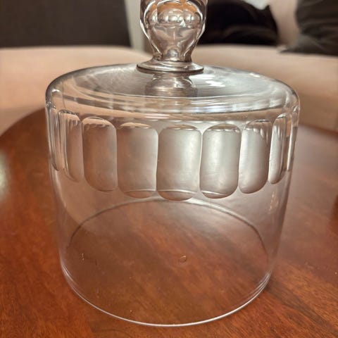 18 cm osteklokke selges. Flott til å ha blomst eller noe annet inni om man ikke bruker den til ost