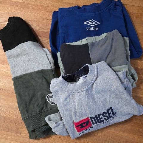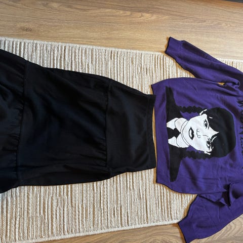 Glitter klespakke med en t-shirt fra Cubus (158-164), glitter bukse (hm, 164), grønn genser (XS, FB sister). Den grønne genseren er i XS’, men passer mer 164.