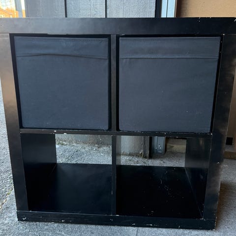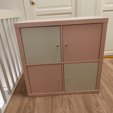 Pen IKEA Kallax kommode med 4 stk Knipsa kurv i siv selges rimelig