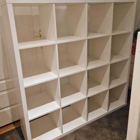 Pen IKEA hylle av typen Kallax. Med 4 stk Knipsa kurv selges. Pen stand