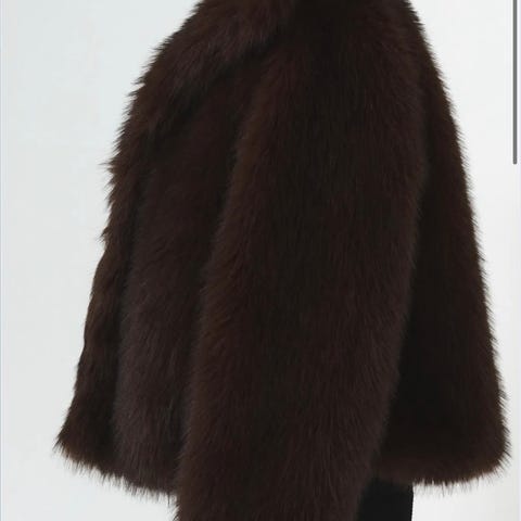 Nelly Andre jakker i størrelse S for kvinner. Jakken er laget av fuskepels og har en brun farge. Passer til bruk som ytterplagg for kjøligere vær.