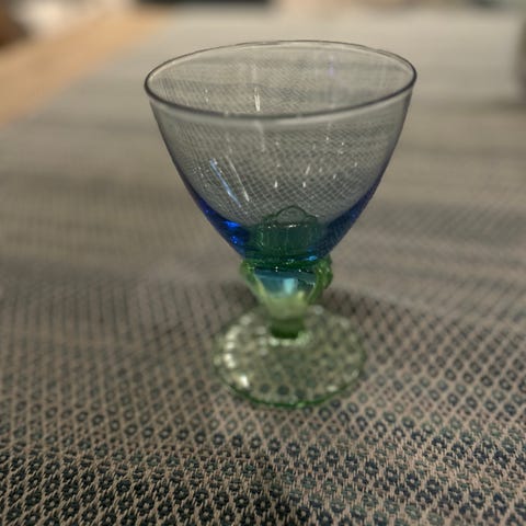 Vi selger disse fine vinglassene, da vi ikke bruker de lenger. Tipper de kan være fra 60- eller 70-tallet, og at de opprinnelig er produsert som hvitvinsglass.