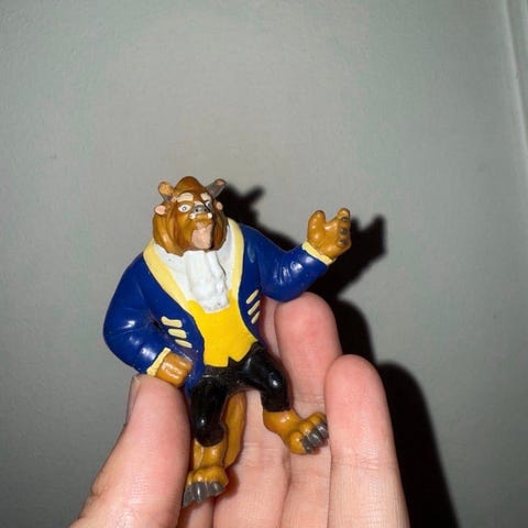 Disney figurine i svart antrekk med detaljer i lilla og rosa. Figuren har en unik design og kan brukes som samlerobjekt eller dekorasjon.