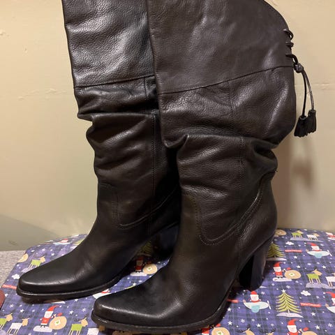 Elegante støvletter fra Aldo. Støvlettene er i sort ruskinn med skinn såle og sålet med gummisåle for å tåle godt utendørs bruk. Glidelås på innsiden og elastikk oppe på leggen gir god passform. 10 cm hæl.