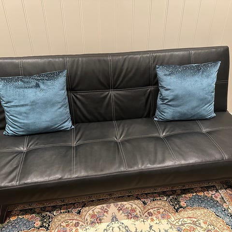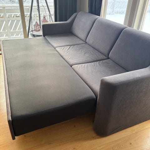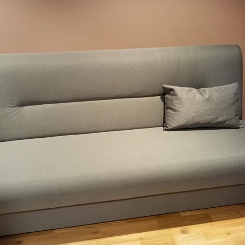 Liten og nett sovesofa. Fungerer veldig bra på ett barnerom el i en loft stue. Kjøpt på Jysk. Vanlig bruksslitasje men i god stand