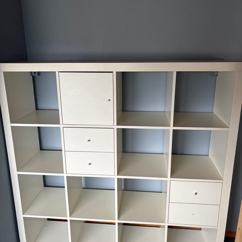 Nesten ny KALLAX hylle. Svarte tøykurver følger ikke med