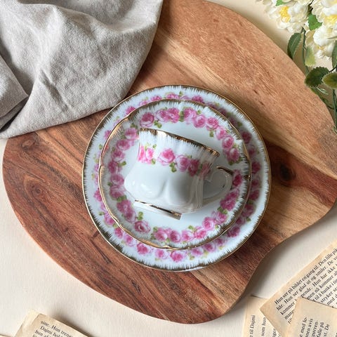 Etasjefat med rose, kake/frukter fat 2 høyde, Mariehult design Sweeden.
