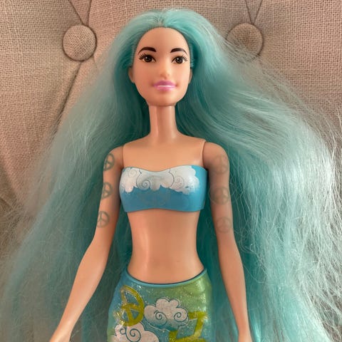 Barbie Mattel selges for 100 kr . Som bildene viser er sømmen på armen på kjolen gått litt opp . Men det lar seg nok lett fikse . Kan sendes med post nord for 70 kr eller fiks ferdig eller kan hentes etter avtale .