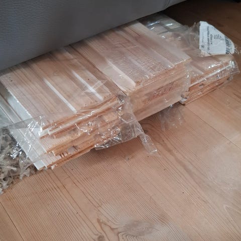Totalt har jeg ca. drøye 14 m2 eller drøye ca. 120 løpemeter (LM), som jeg selger meget rimelig for kr. 1.500,- for alt samlet.