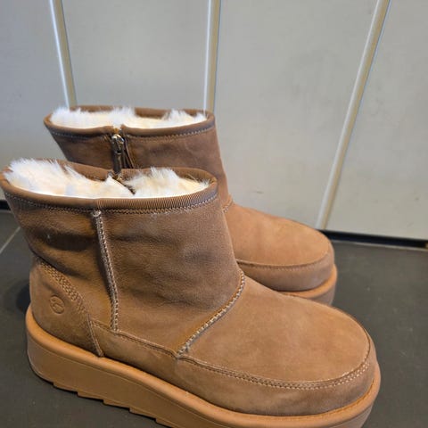 Tamaris Vinterstøvler i størrelse 38 med svart farge. Støvlene har isolerende fôr for varme og en solid såle med godt grep, egnet for vinterbruk. Kun brukt én sesong. Nypris 1200kr