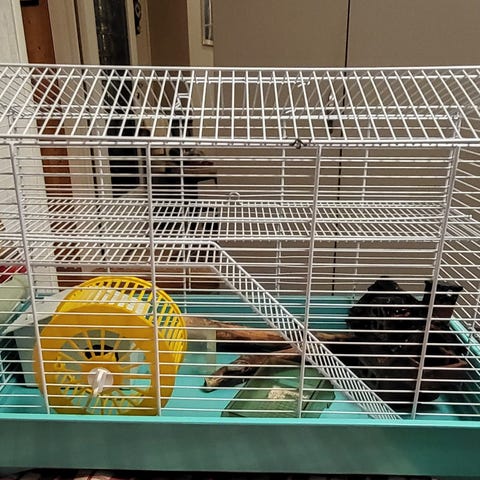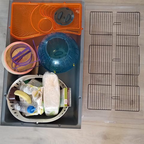 Gir vekk hjemme laget hamsterbur med masse utstyr.