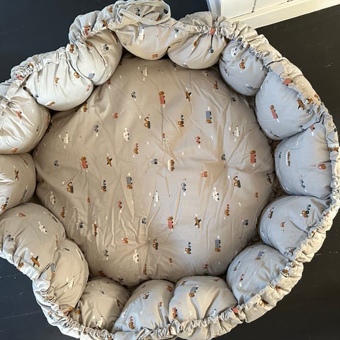 Done by Deer Cozy babynest med et grønt mønster. Babynesten er laget av 100% økologisk bomull og er designet for å gi en trygg og komfortabel soveplass for babyer.