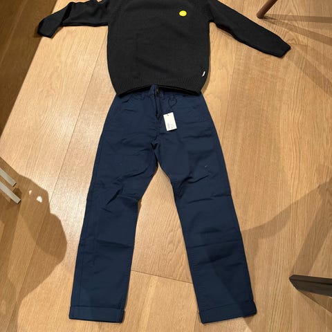 Vid bukse, to pene gensere med ballongermer