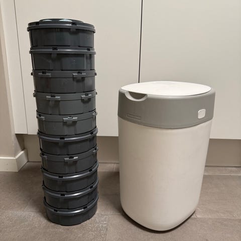 Tilhører eldre type av tommee tippee bleiebeholder. 3pk med 3x refill.