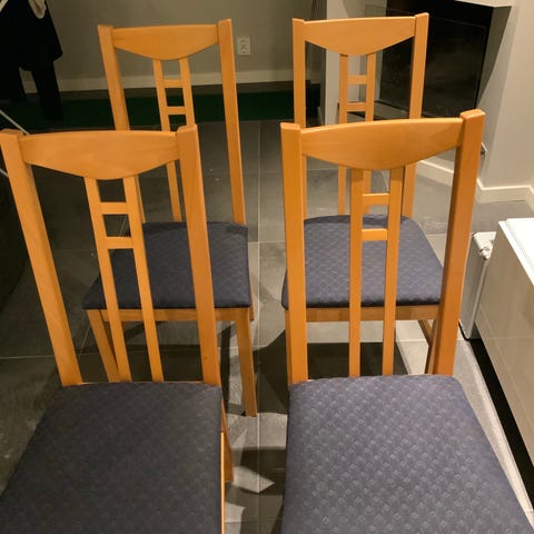 Fire fine IKEA EKEDALEN stoler med mørk ramme og Orrsta lys grå trekk. 100 kr per stk.
