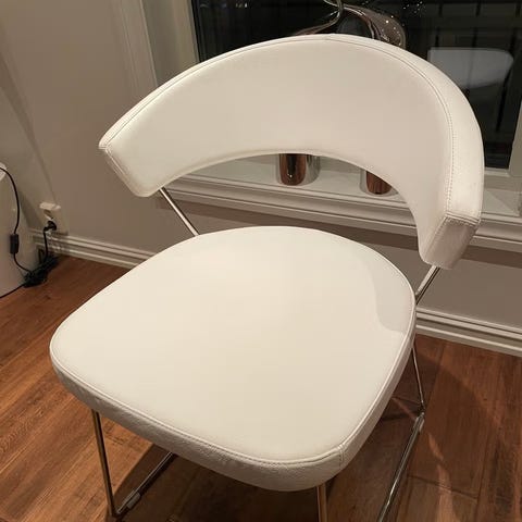 Selger 6 brukte Magis Chair One stoler. Designet av Konstantin Grcic. Stolene har vært i daglig bruk, og har noen små merker etter stabling. Stolene kan benyttes både inne og ute. Ble i sin tid kjøpt nye hos «Black and White Studio» i Bergen. Stolene selges samlet