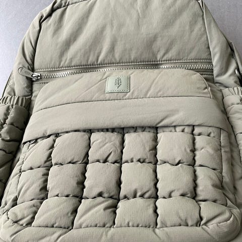 Praktisk ryggsekk i stoff. Ikke brukt, merkelapp fortsatt på. Farge: «deep mulberry». Opprinnelig pris $ 98.