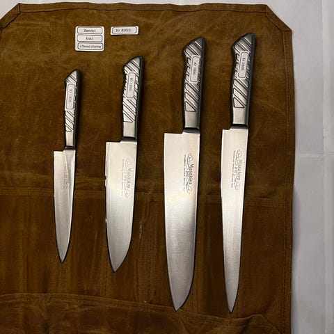 Selger en original Tamahagane knivveske av høy kvalitet. Vesken er rundt 8 år gammel og ble brukt noe i perioden da jeg jobbet som kokk og gikk på skole. De siste fem årene har den kun vært brukt til trygg oppbevaring av kniver hjemme, og har derfor hatt svært lite slitasje i nyere tid.