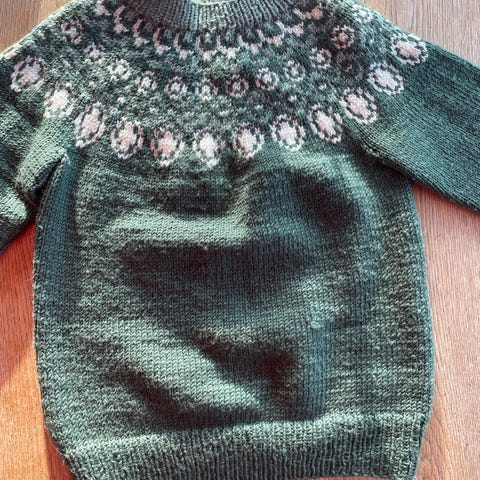 Lilla snøløv genser ca 6-7 år. Kr 200
