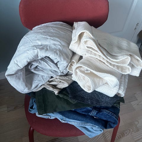 100kr pr jeans eller 50kr for tskjorter/singlet