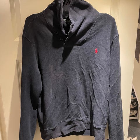 Ralph Lauren Polo genser i blå farge, størrelse M, laget av bomull. Genseren har glidelås i halsen og langermet design.