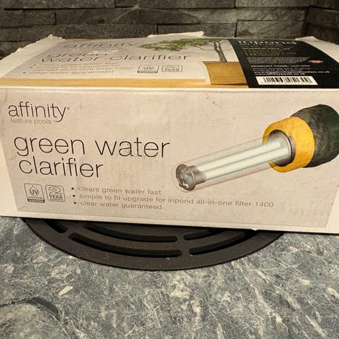Tilskudd for klart vann i hagedam, ser ubrukt ut.