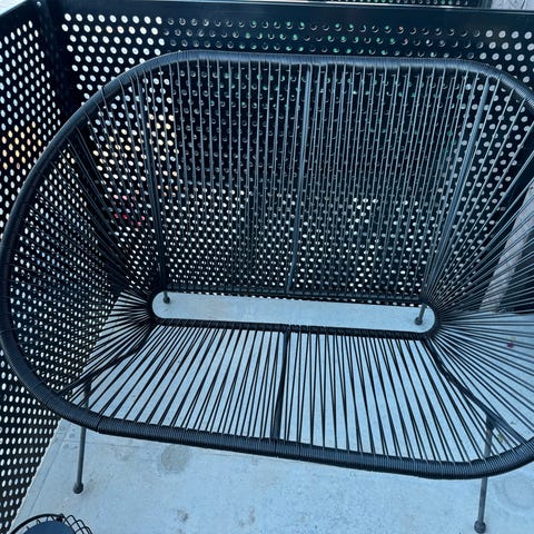 Selges billig da det kan forekomme flekker, stoffbiten til å dra ut sovedelen er litt revna (kan sikkert fikses med stifter) og ønsker å få bytta sofa så fort som mulig