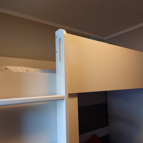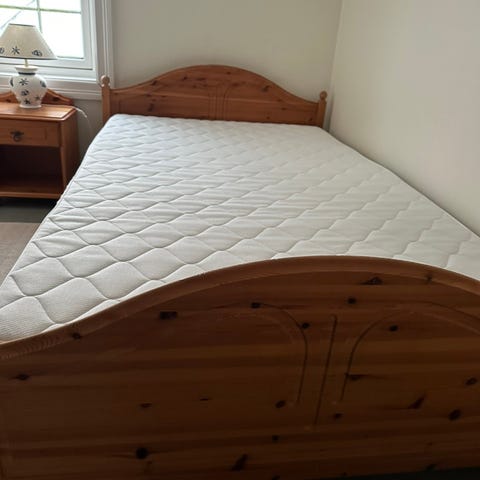 Noe bruksmerker etter LED-lys som har vert hengt på. Disse ble demontert og sengen er vasket med steamer på 97* etter vannlekkasje fra taket.