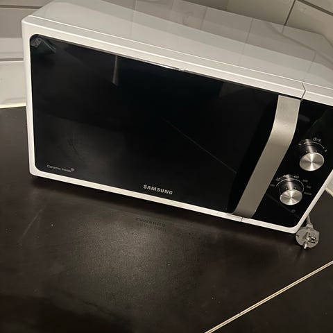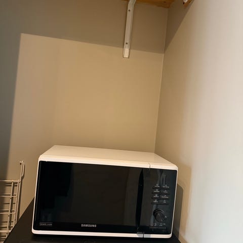 Samsung mikrobølgeovn i hvit farge. Nesten ikke brukt da den har stått i pendlerbolig.