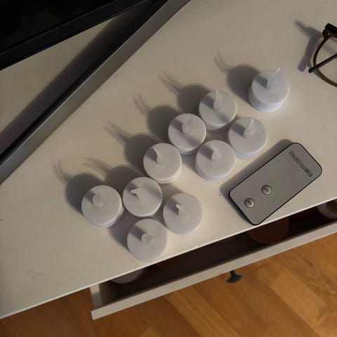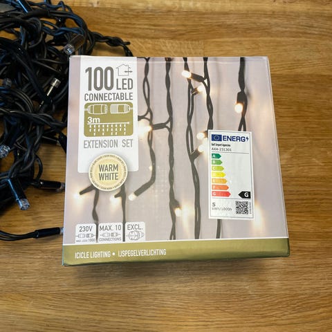Gir bort en lyslenke med enkeltlys i varmhvit farge. mange meter lang. Må hentes på Hasle i Oslo.