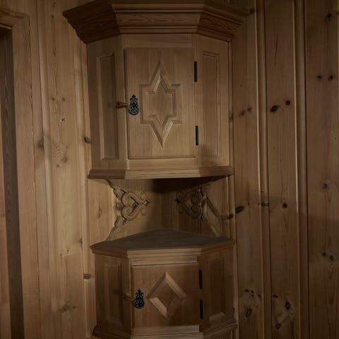 Antikk hjørnestol i malt tre