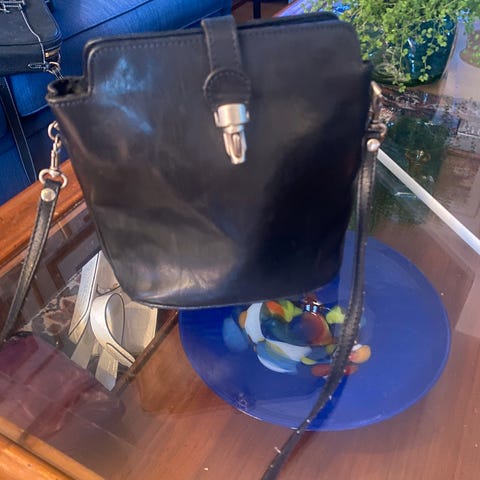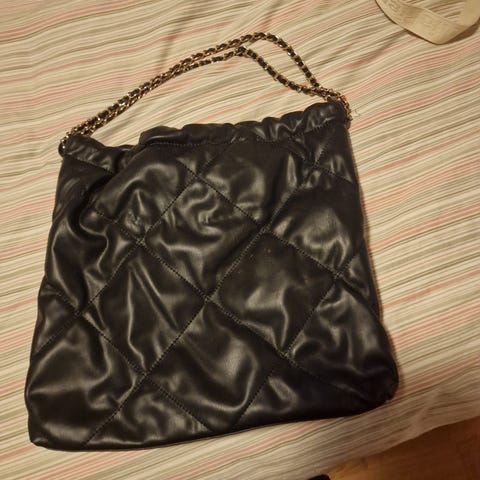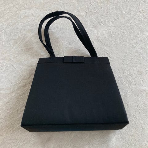 Liten, svart håndveske med ett oppbevaringsrom. Metallåsen er enkel og i god stand. Veldig lite brukt.