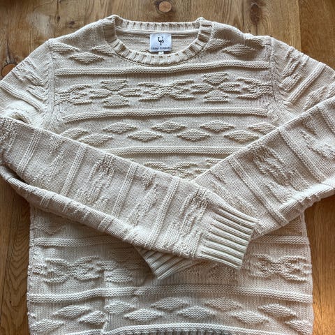 Urban Pioneers genser i beige farge, laget av bomullsmateriale. Størrelse S men passer M for herre. Genseren har en glidelås i halsen og en enkel design.