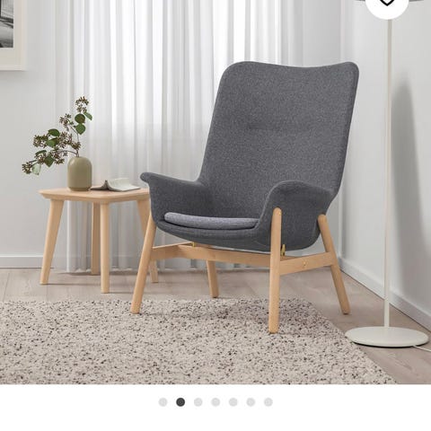 Hvis du ønsker å lese mer om stolen finner du informasjon her: https://www.ikea.com/no/no/p/vedbo-lenestol-gunnared-gammelrosa-40423578/