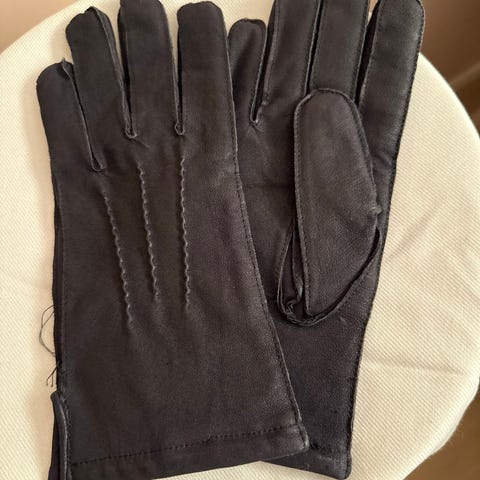Mørk brune skinnhansker med tynt «silkeaktig» fór størrelse 7,5.